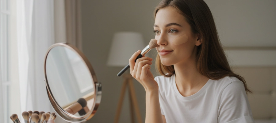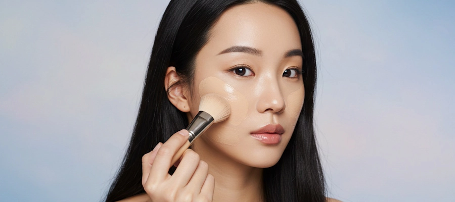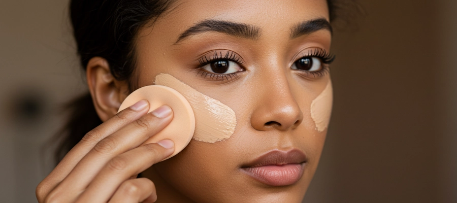 まず、スキンケアで肌を整えた後、化粧下地を使用します。その後、付属のパフにファンデーションを適量取り、顔の中心から外側に向かってポンポンと優しく叩き込むように塗布します。