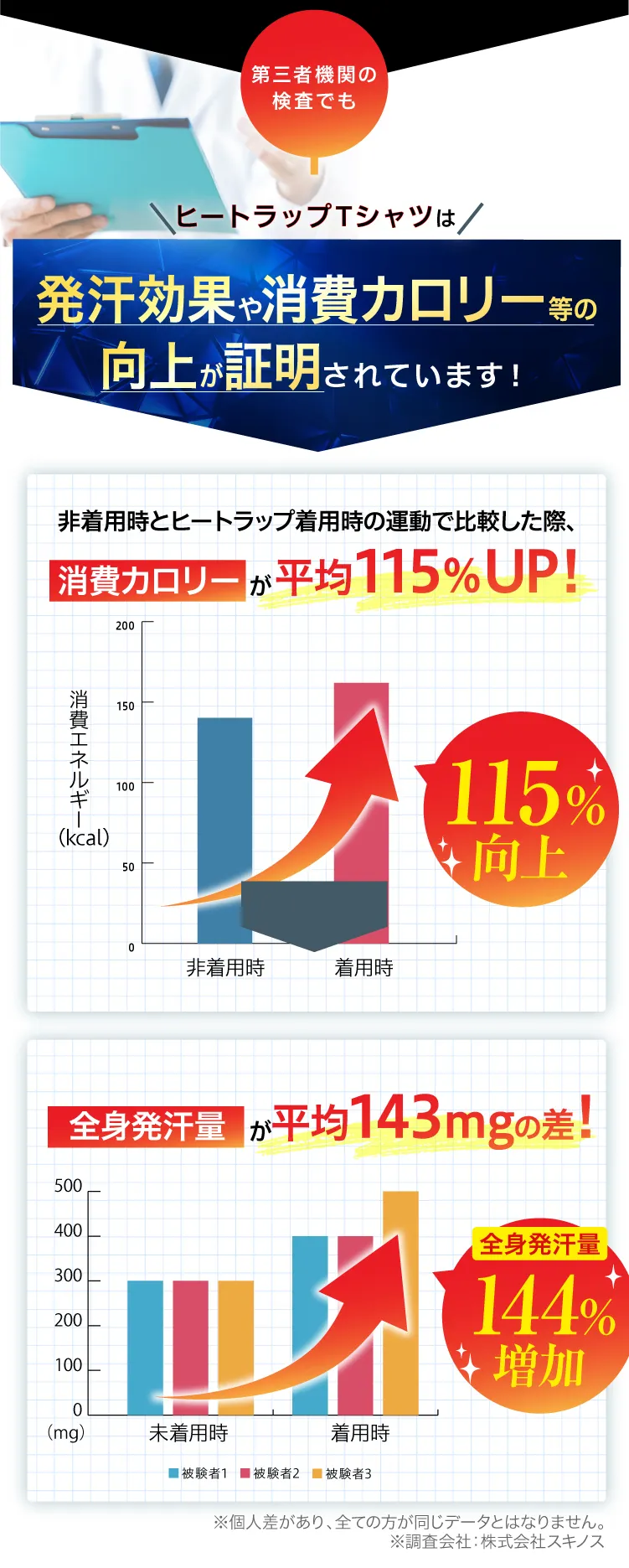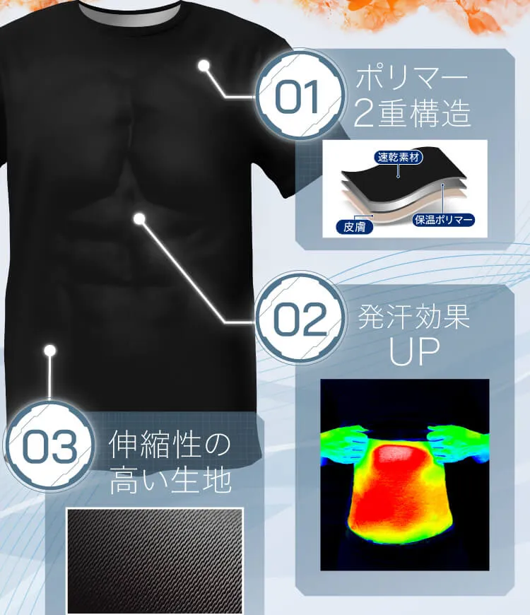 ヒートラップは、着用するだけで24時間サウナ効果が得られる画期的なTシャツです。