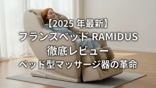 リラックス・マッサージ 【2025年最新】フランスベッド RAMIDUS(ラミダス)徹底レビュー|ベッド型マッサージ器の革命 はじめに:自宅で極上のリラクゼーション体験を現代社会において、日々のストレスや疲労は避けられないもの。デスクワークによる肩こり、立ち仕事による腰痛、スマートフォンの使いすぎによる眼精疲労など、体の不調を抱えている方は少なくありません。「マッ... 2025.10.07 リラックス・マッサージ