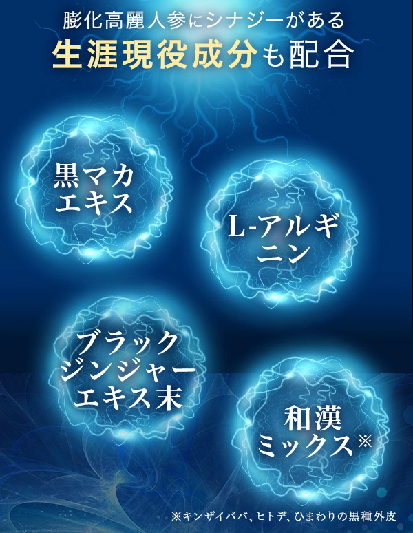 これらの成分が相乗的に働くことで、体の内側から活力をサポートし、生涯現役の毎日を目指すことができます。