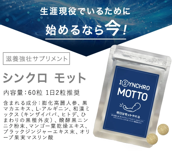 シンクロモットとは?生涯現役を目指す大人のための滋養強壮サプリ